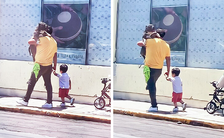 Yes, Luz Elena, modern-day vigilante, captured a video where a guy is one-arming his dog while holding his child’s hand. It’s the quintessential image of ‘daddy loves you but poochie gets the royal treatment.’ Luz, probably shaking her head in the driver’s seat, captioned it, quite sassily, ‘When your priority is your dog, not the child.’
