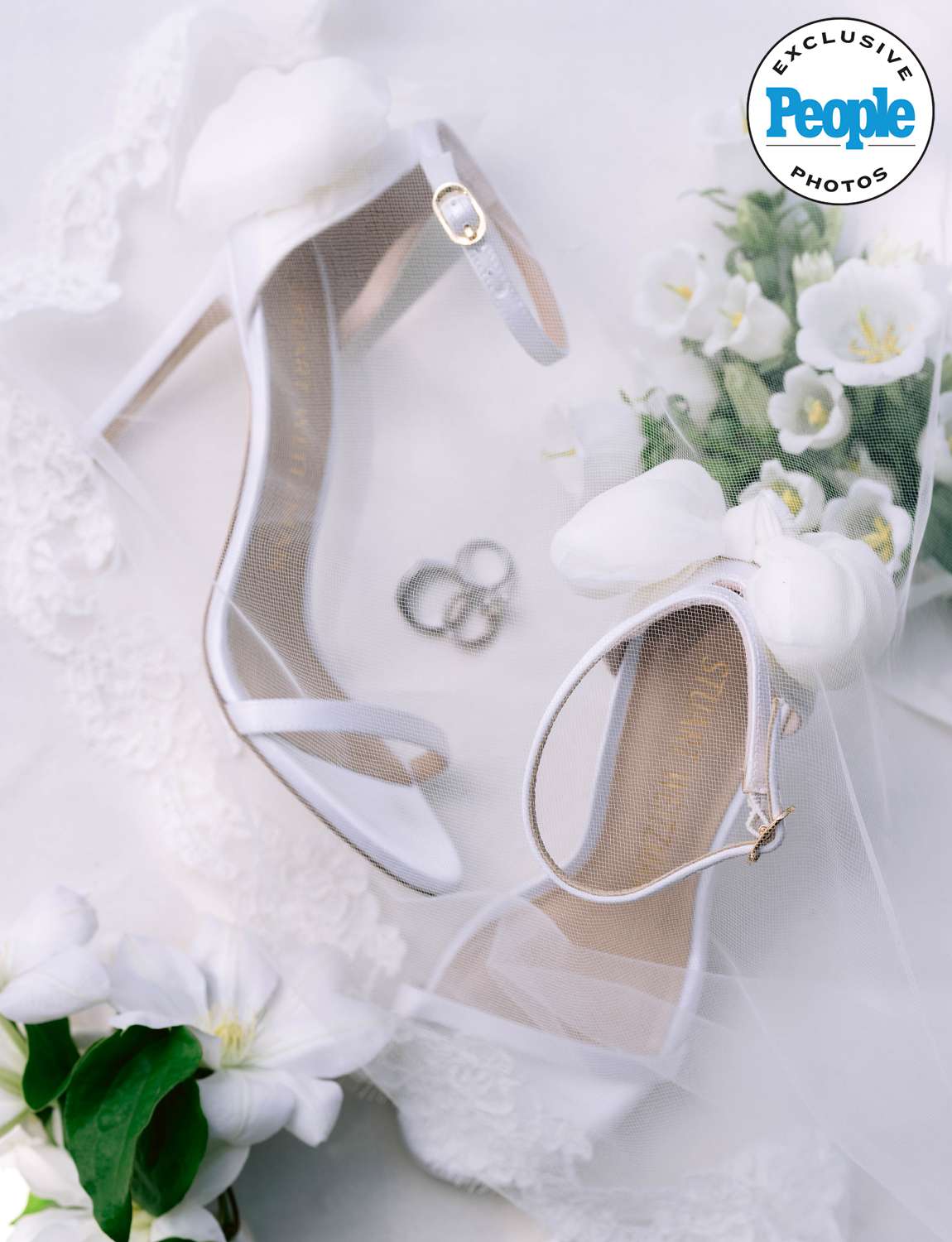 Funk opted for a classic tuxedo from The Gentleman’s Playbook and his KAY Jewelers wedding band, which the couple had engraved with their initials on the inside as a nod to Funk’s dad, who did the same thing for his mom on their wedding day.